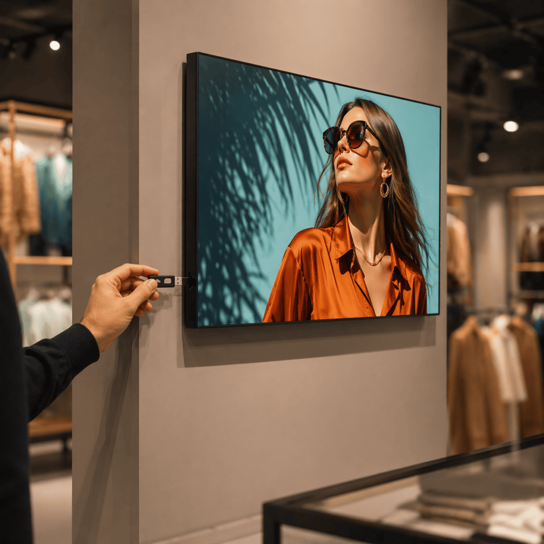 Für einfachere Anwendungen ist auch die direkte Wiedergabe per USB-Stick möglich. Das ist besonders dann sinnvoll, wenn Inhalte nur gelegentlich wechseln oder keine zentrale Steuerung benötigt wird. So bleibt Digital Signage nicht nur professionell, sondern auch im Alltag angenehm unkompliziert.
