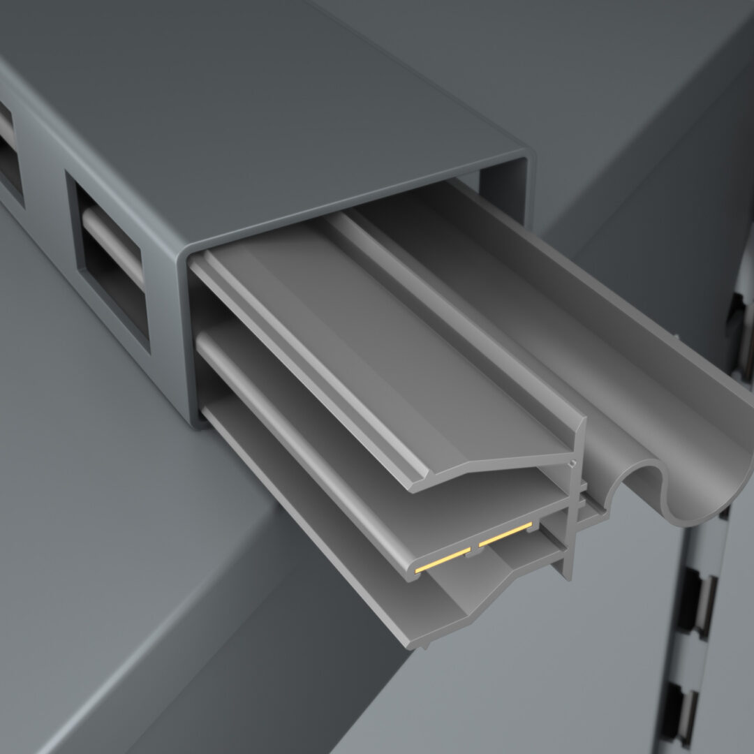 Regale sind Bühnen, keine Technikräume. Darum verschwindet bei der Inside Rail Solution von KRAISS die gesamte Stromführung im Inneren – für maximale Eleganz im Store und eine Präsentation, die wirkt, ohne abzulenken.