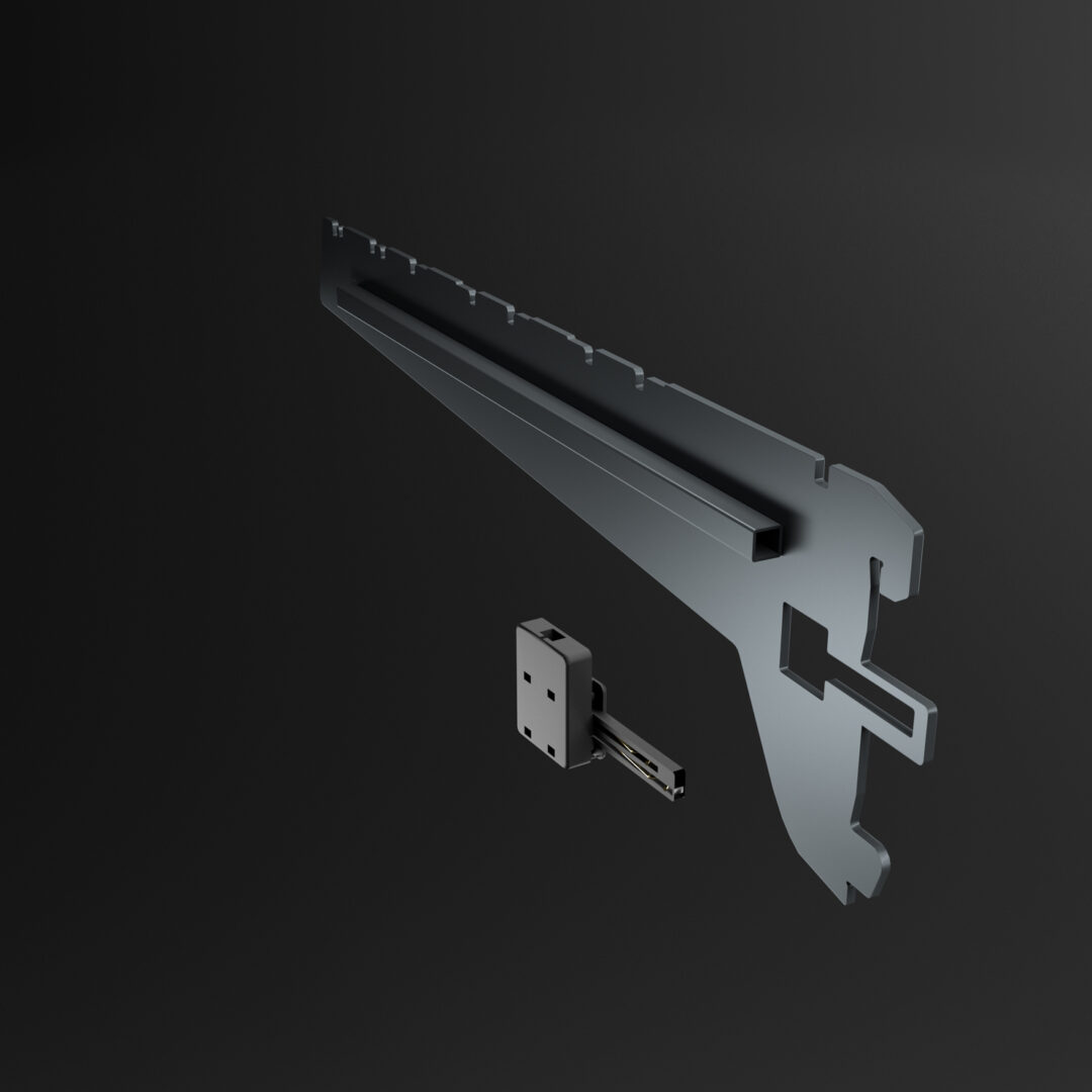 Für jeden neuen Fachboden erst einmal Kabel ziehen? Nicht mit uns: Wir schwören auf kabellose Montage, schnell und komfortabel. Dafür werden die Stromabnehmer der Inside Rail Solution direkt an der Konsole befestigt. Einfach die Konsole einstecken – und schon geht im Regal das Licht an.