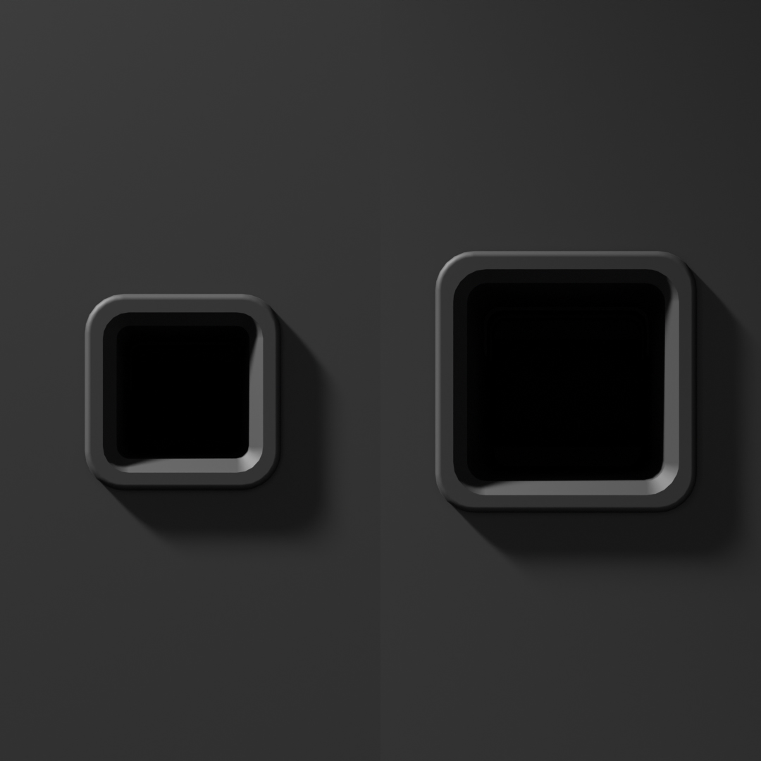 Die Buchsen für unser Plug System gibt es in zwei Standardgrößen: 10x10mm und 15x15mm. So können Sie frei entscheiden, welche Produkte einen Platz an der Highlight-Wand bekommen.